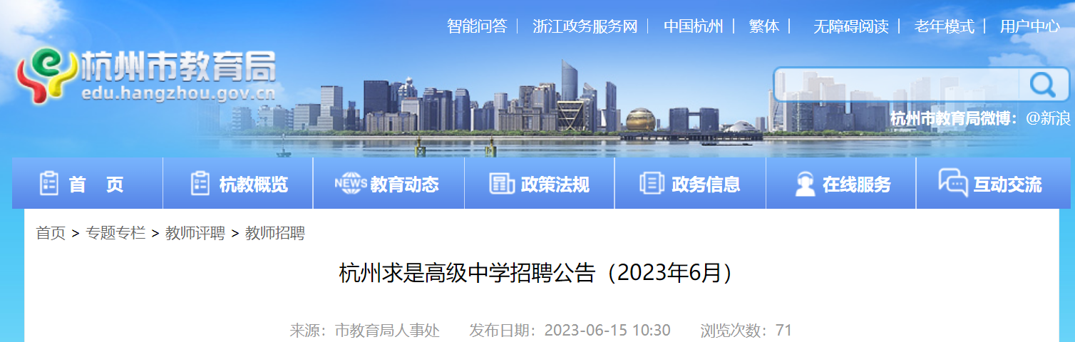 原文標(biāo)題:杭州求是高級中學(xué)招聘公告(2023年6月)