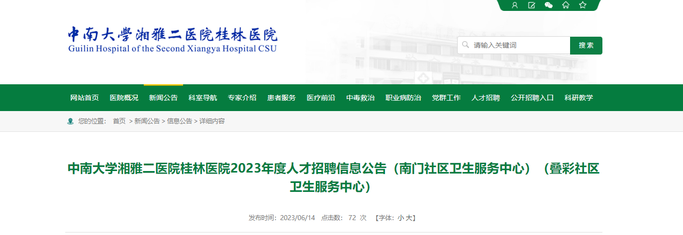 2023廣西中南大學(xué)湘雅二醫(yī)院桂林醫(yī)院人才招聘7人,報名截止日期:長期有效(直至崗位招滿為止),現(xiàn)將招聘公告原文發(fā)布如下: