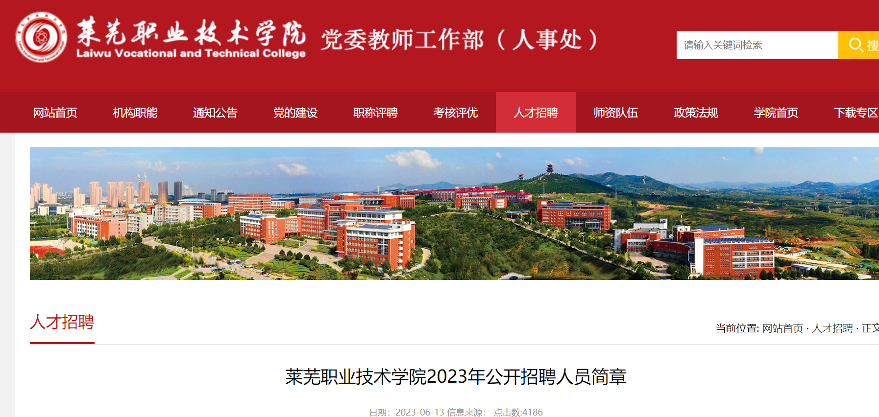 2023山東萊蕪職業(yè)技術(shù)學(xué)院招聘人員報(bào)名入口