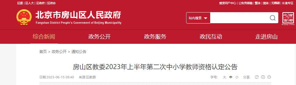 原文標題:房山區(qū)教委2023年上半年第二次中小學教師資格認定公告