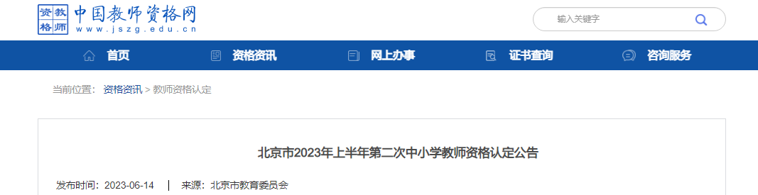 原文標(biāo)題:北京市2023年上半年第二次中小學(xué)教師資格認(rèn)定公告