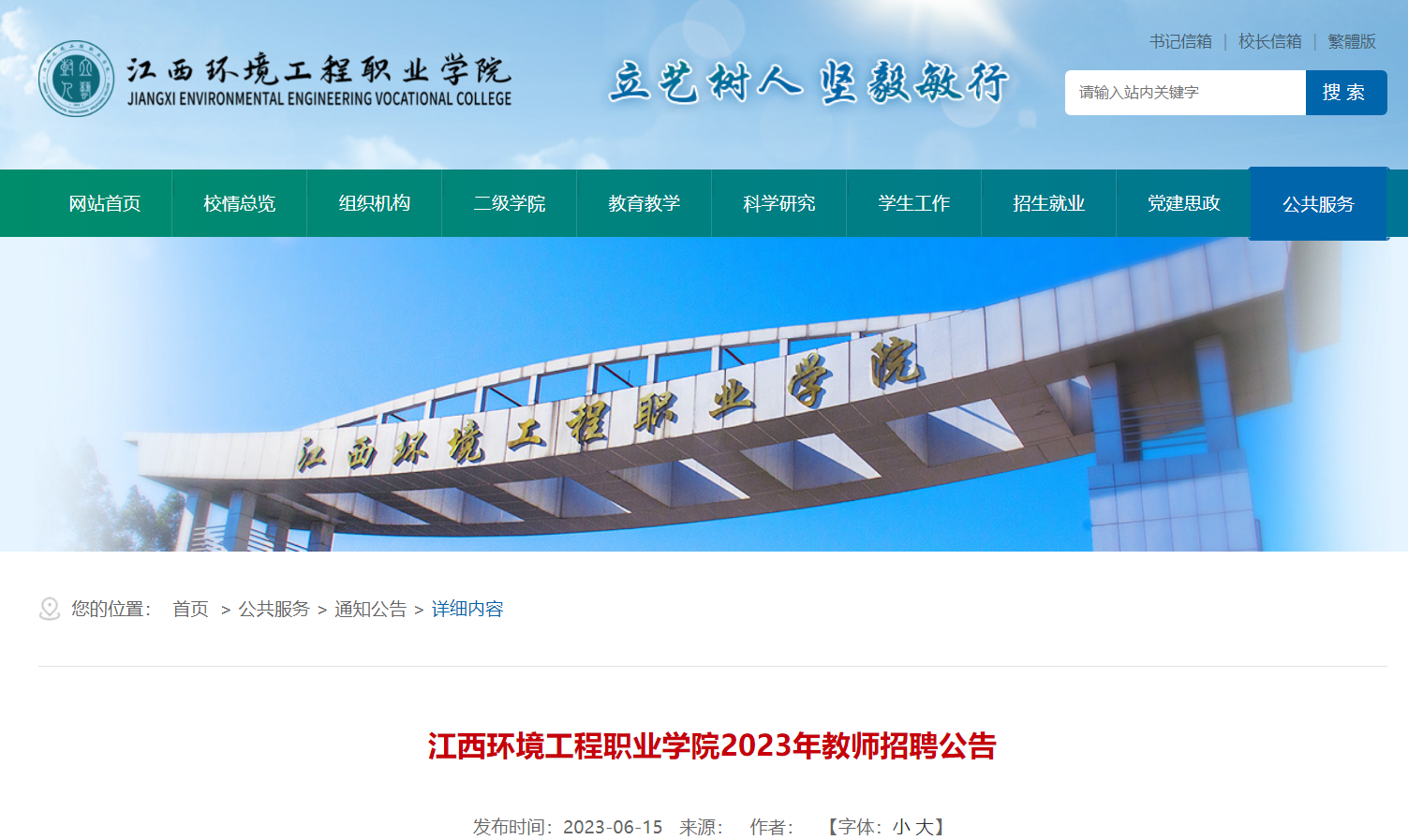 2023年江西環(huán)境工程職業(yè)學(xué)院教師招聘報(bào)名入口