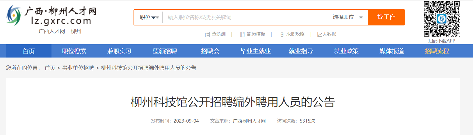 本次公開招聘公告在柳州科技館官方網(wǎng)站(http://lzkjg.cn/)、廣西·柳州人才網(wǎng)(lz.gxrc.com)發(fā)布。