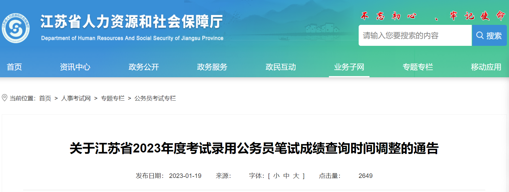 從江蘇省人力資源和社會保障廳了解到,2023年江蘇公務(wù)員考試成績查詢時間調(diào)整至2月上旬公布,相關(guān)事宜如下: