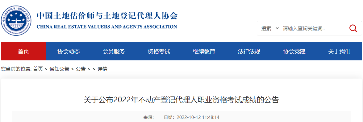 #】從中國土地估價師與土地登記代理人協(xié)會發(fā)布的《關(guān)于公布2022年不動產(chǎn)登記代理人職業(yè)資格考試成績的公告》中獲悉,自2022年10月12日起大家可通過在線查詢考試成績,小編在這里預(yù)祝大家順利拿證!