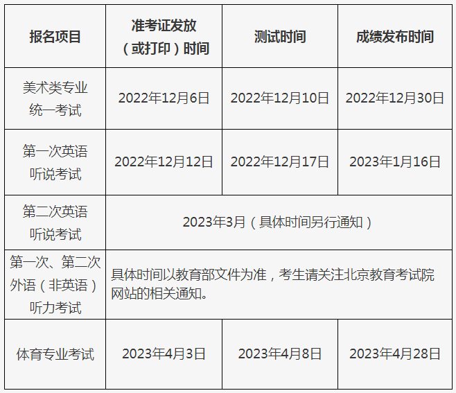 附件2:北京市2023年普通高等學(xué)校招生相關(guān)測試安排