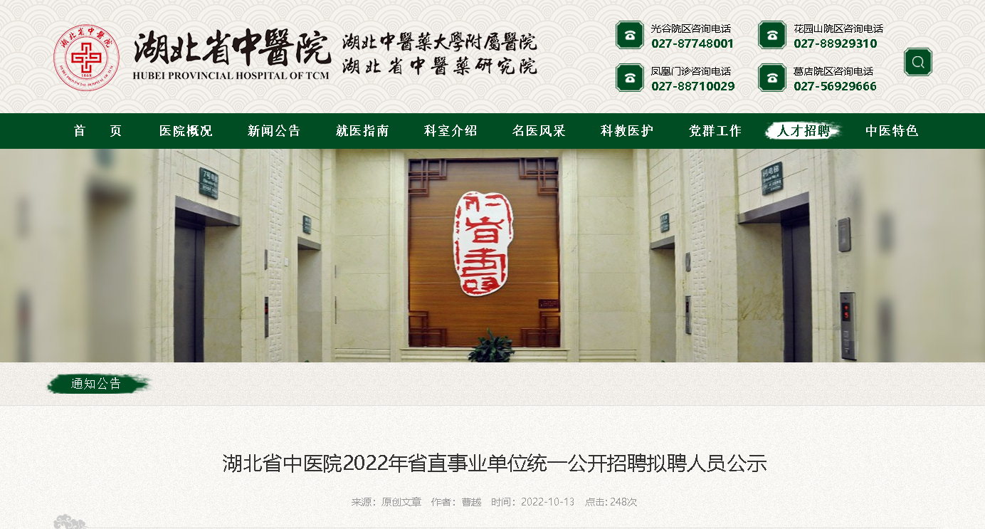 2022湖北省中醫(yī)院省直事業(yè)單位招聘擬聘公示已出,公示時間:2022年10月13日-10月21日,現(xiàn)將招聘公示原文發(fā)布如下:
