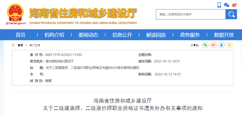 原文標(biāo)題:海南省住房和城鄉(xiāng)建設(shè)廳關(guān)于二級(jí)建造師、二級(jí)造價(jià)師職業(yè)資格證書遺失補(bǔ)辦有關(guān)事項(xiàng)的通知