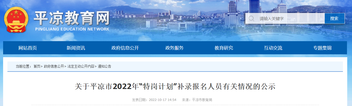 原文標(biāo)題:關(guān)于平?jīng)鍪?022年“特崗計劃”補錄報名人員有關(guān)情況的公示