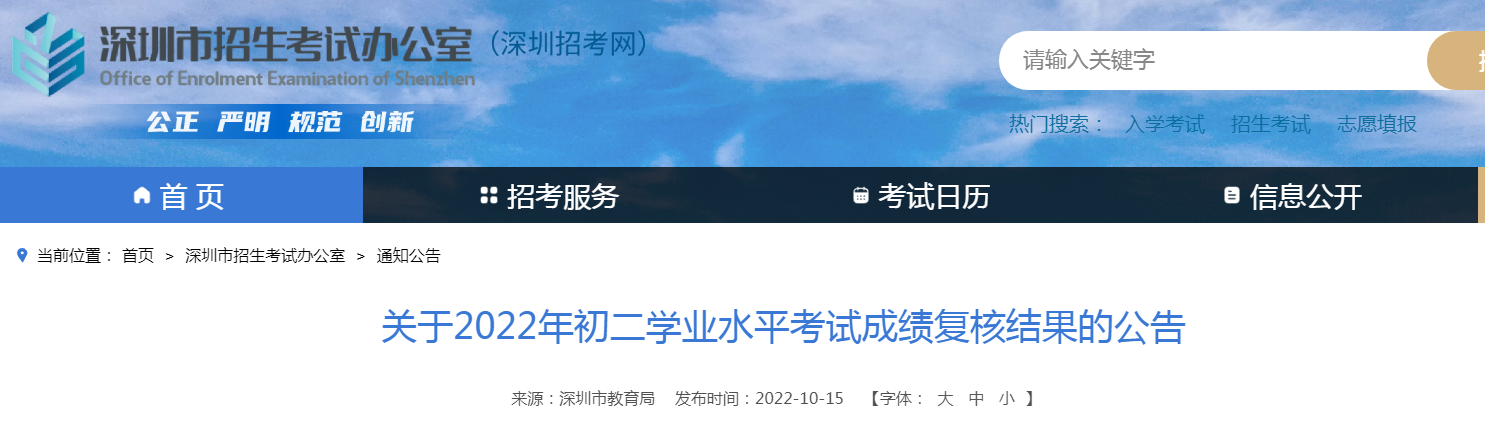 從深圳市招生考試辦公室了解到,關(guān)于廣東深圳2022年初二學(xué)業(yè)水平考試成績(jī)復(fù)核結(jié)果的公告已發(fā)布,詳細(xì)內(nèi)容如下: