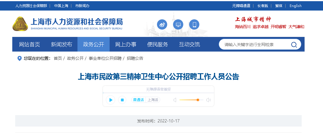 2022年上海市民政第三精神衛(wèi)生中心公開招聘工作人員,報名時間:2022年10月28日截止,現(xiàn)將招聘公告原文發(fā)布如下: