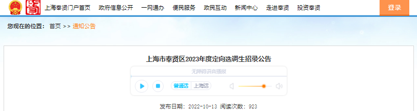 原文標(biāo)題:上海市奉賢區(qū)2023年度定向選調(diào)生招錄公告
