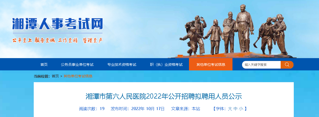 2022湖南湘潭市第六人民醫(yī)院招聘擬聘人員公示已出,公示時(shí)間:2022年10月17日至2022年10月25日,現(xiàn)將招聘公示原文發(fā)布如下: