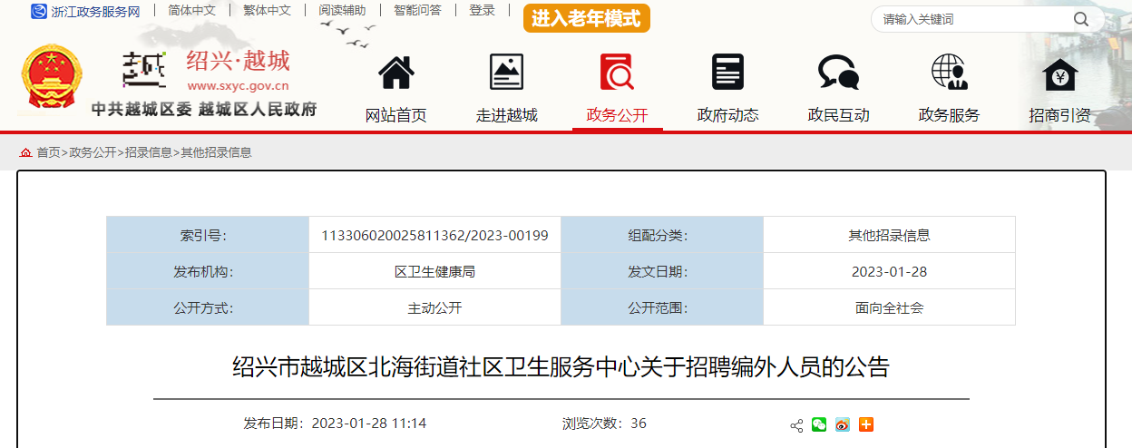 原文標題:紹興市越城區(qū)北海街道社區(qū)衛(wèi)生服務(wù)中心關(guān)于招聘編外人員的公告