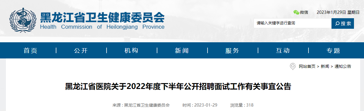 原文標(biāo)題:黑龍江省醫(yī)院關(guān)于2022年度下半年公開招聘面試工作有關(guān)事宜公告