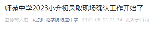 小升初頻道從太原師范學(xué)院附屬中學(xué)了解到,山西太原師苑中學(xué)2023小升初錄取現(xiàn)場確認(rèn)工作時間已公布。安排在8月3日8:30—11:30。詳情如下:
