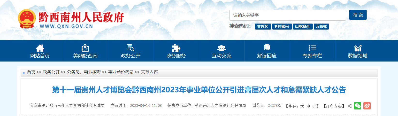 原文標(biāo)題:第十一屆貴州人才博覽會(huì)黔西南州2023年事業(yè)單位公開引進(jìn)高層次人才和急需緊缺人才公告