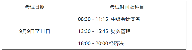 中級會計資格考試于2023年9月9日至11日舉行,共3個批次,具體安排如下: