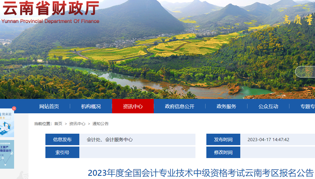 原文標(biāo)題:2023年度全國會計專業(yè)技術(shù)中級資格考試云南考區(qū)報名公告