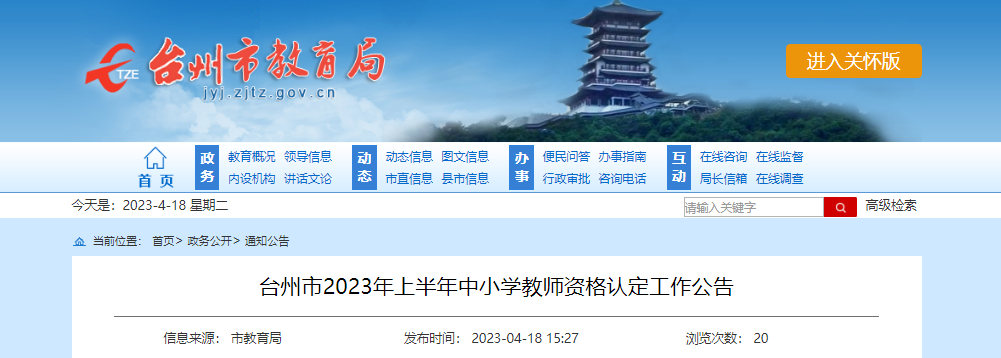 原文標題:臺州市2023年上半年中小學教師資格認定工作公告