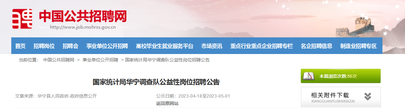 2023年甘肅省國家統(tǒng)計局華寧調(diào)查隊公益性崗位招聘工作人員。報名時間:公告發(fā)布之日至2023年5月1日(上午9:00-11:30下午14:30-17:00),雙休日除外。現(xiàn)將公告原文發(fā)布如下: