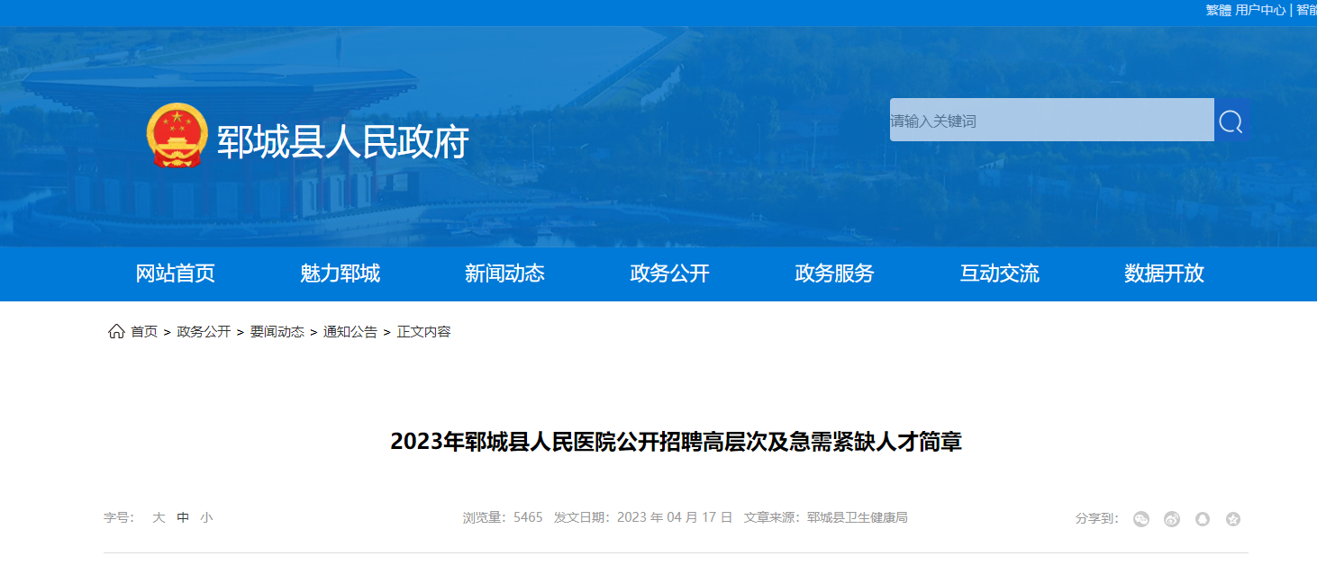 原標(biāo)題:2023年鄆城縣人民醫(yī)院公開招聘高層次及急需緊缺人才簡章