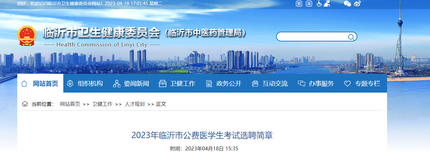 2023年臨沂市公費醫(yī)學(xué)生選崗考試與2023年度臨沂市醫(yī)療衛(wèi)生事業(yè)單位衛(wèi)生類公開招聘筆試一并組織。