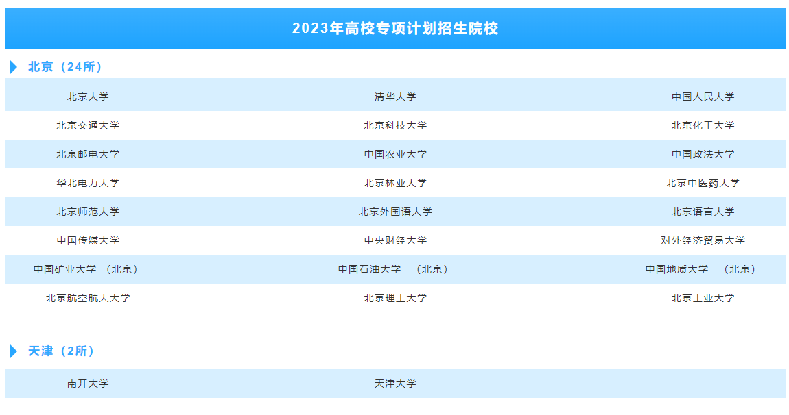 點擊查看:2023年高校專項計劃招生院校
