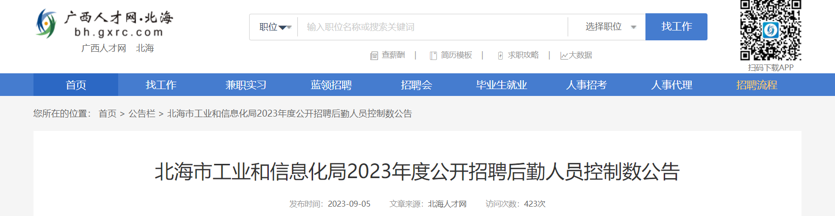 2023年廣西北海市工業(yè)和信息化局招聘后勤人員控制數(shù)1人。報(bào)名時(shí)間:2023年9月6日上午08:00-2023年9月12日下午18:00?,F(xiàn)將公告原文發(fā)布如下: