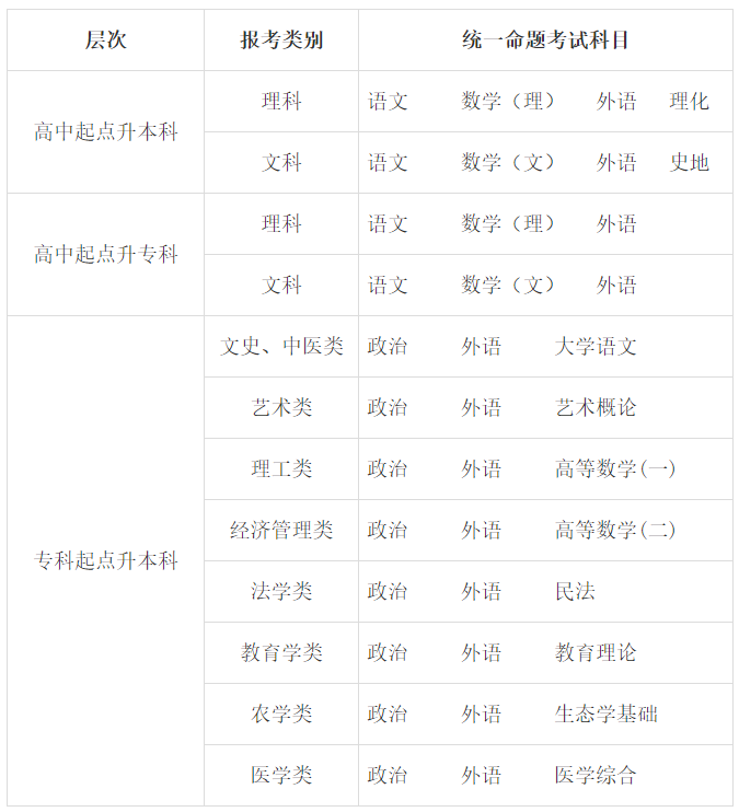 2.??破瘘c升本科招生專業(yè)所對應的考試科目按《??破瘘c升本科專業(yè)與統(tǒng)一考試科目對照表》(教學廳〔2017〕12號文件附件4)執(zhí)行。