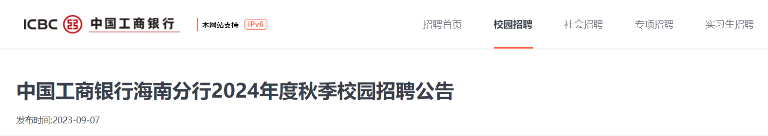 2024年度中國工商銀行海南分行秋季校園招聘160人,報(bào)名時(shí)間:2023年9月7日至10月13日,現(xiàn)將招聘公告發(fā)布如下: