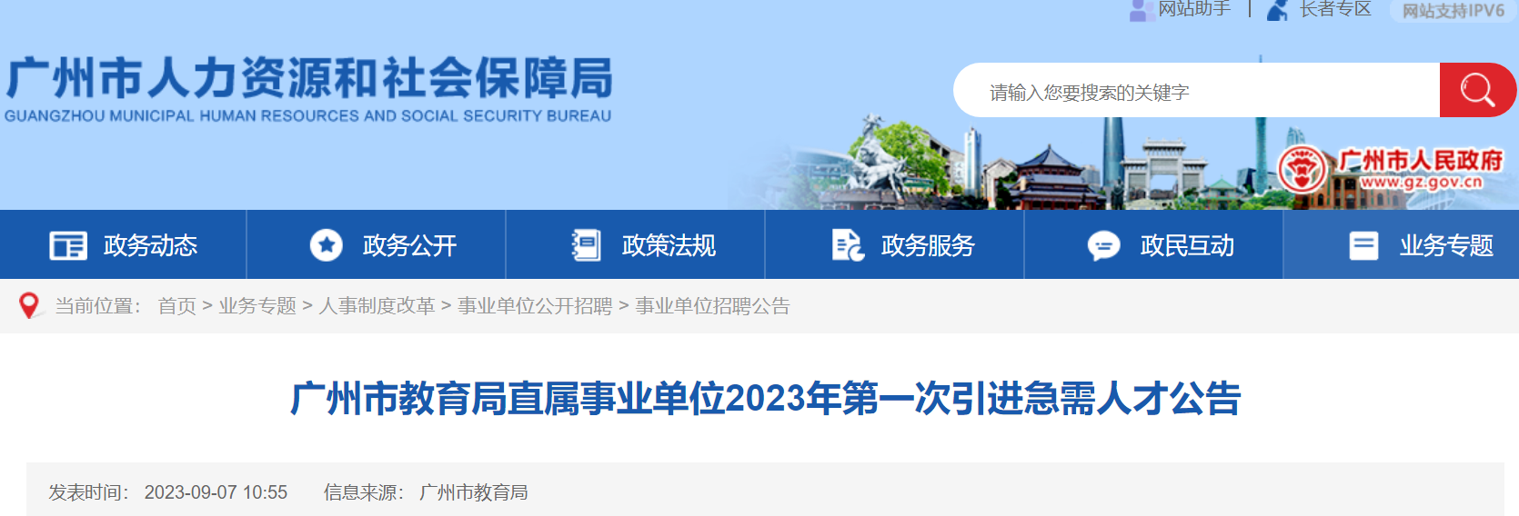 2023年廣東廣州市教育局直屬事業(yè)單位第引進急需人才24名,報名時間:2023年9月12日9時至2023年9月18日17時。現(xiàn)將招聘公告原文發(fā)布如下: