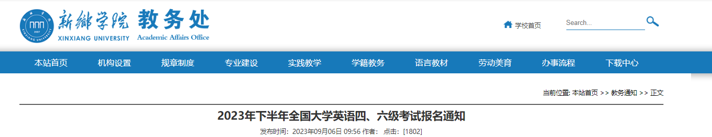 從新鄉(xiāng)學(xué)院教務(wù)處獲悉,2023年下半年河南新鄉(xiāng)學(xué)院英語四、六級考試報名通知已公布,請相關(guān)人員仔細閱讀,具體詳情如下: