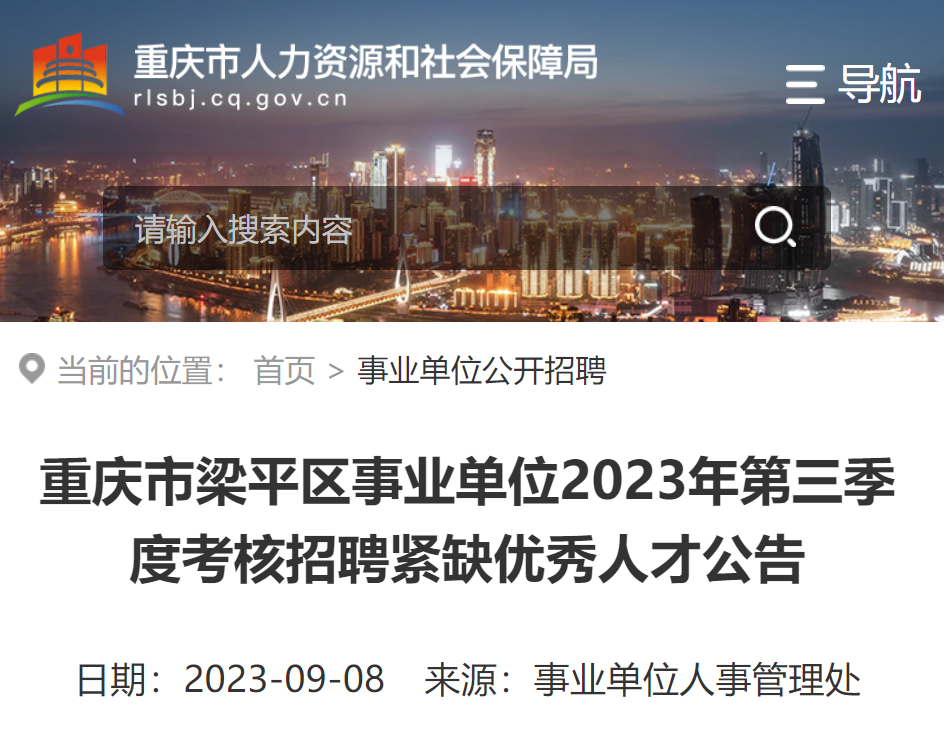 2023年重慶市梁平區(qū)事業(yè)單位第三季度考核招聘緊缺優(yōu)秀人才11人。報(bào)名時(shí)間:2023年9月14日9:00至9月18日18:00?,F(xiàn)將公告原文發(fā)布如下: