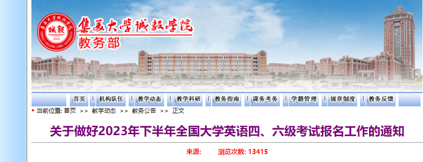 從集美大學(xué)誠毅學(xué)院獲悉,2023下半年福建集美大學(xué)誠毅學(xué)院英語四、六級考試報名工作通知已公布,請相關(guān)人員仔細(xì)閱讀,具體詳情如下: