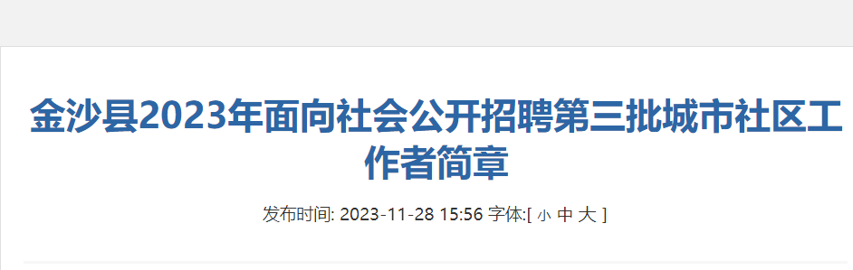招聘信息于2023年11月28日在金沙縣人民政府網(wǎng)(http://www.gzjinsha.gov.cn)上發(fā)布。