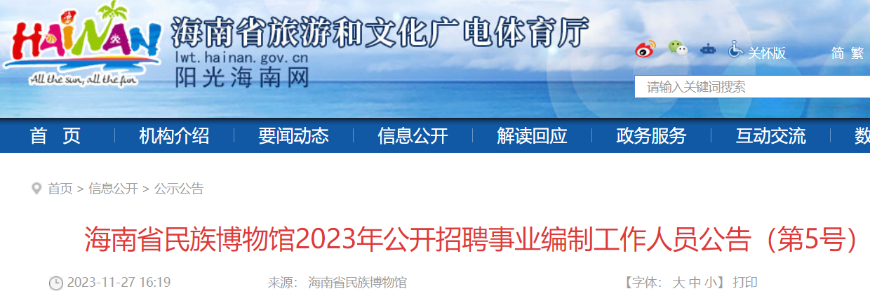 海南省民族博物館2023年公開招聘事業(yè)編制工作人員資格復審工作已結束,現(xiàn)將面試等相關事宜公告如下: