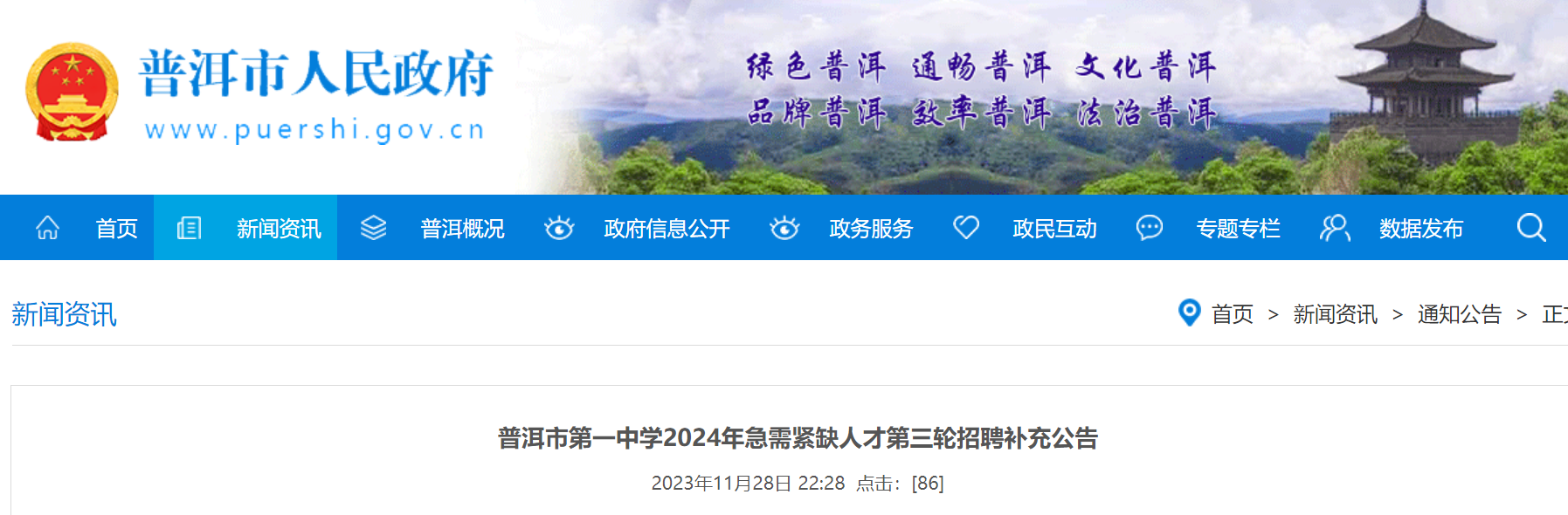 《普洱市第一中學(xué)2024年急需緊缺人才第三輪招聘公告》查詢網(wǎng)址:普洱市人民政府網(wǎng)http://www.puershi.gov.cn/通知公告欄。