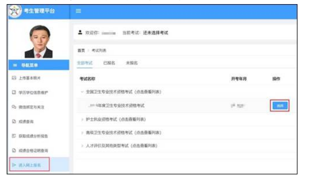 1.點擊【進入網(wǎng)上報名】,選擇“xxxx年度衛(wèi)生專業(yè)技術(shù)資格考試”。