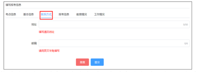 4.按順序填寫報名信息,每頁填寫完畢后點擊當(dāng)頁的“提交”按鈕進入下一頁填寫,標(biāo)“*”的為必填項。