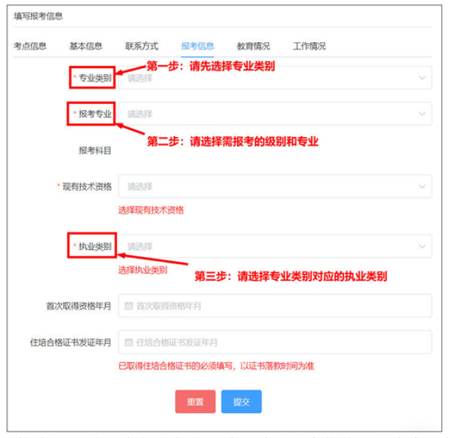 考生須根據(jù)所選的專業(yè)類別,勾選對應(yīng)的執(zhí)業(yè)類別,執(zhí)業(yè)類別不為“無”時,首次注冊年月不能為空。