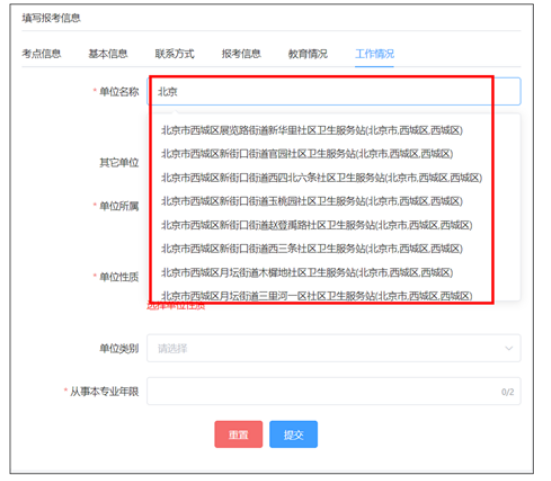 “單位名稱”需要輸入關(guān)鍵字(不可輸入單位縮寫、簡稱)檢索后,在列表中選擇相應(yīng)單位,不可自行填寫。