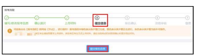 未采用線上確認的考區(qū),系統(tǒng)將跳轉(zhuǎn)至【提交報名信息】頁,考生也可點擊【報考流程】中的“提交信息”節(jié)點,確認無誤后點擊“提交報名信息”。