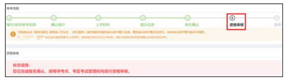 分為考點審核和考區(qū)審核兩個階段,考生可在【報考流程】中查看資格審核狀態(tài)。考區(qū)審核通過后,【資格審核】節(jié)點變?yōu)榫G色。
