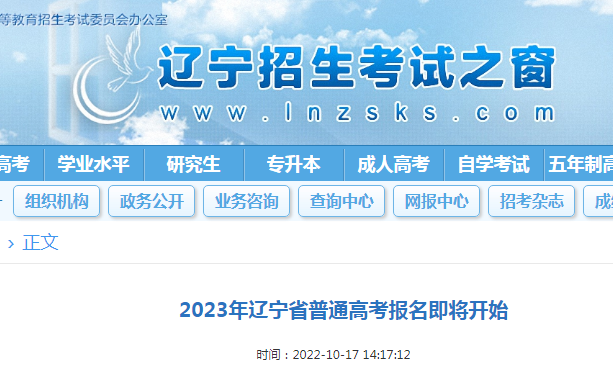 高考頻道根據(jù)遼寧招生考試之窗公布的《2023年遼寧省普通高考報名的通知》了解到,2023年遼寧大連普通高考報名繳費入口將于2022年10月27日開通,考生登錄遼寧招生考試之窗網(wǎng)站(www.lnzsks.com)進行報考。具體如下: