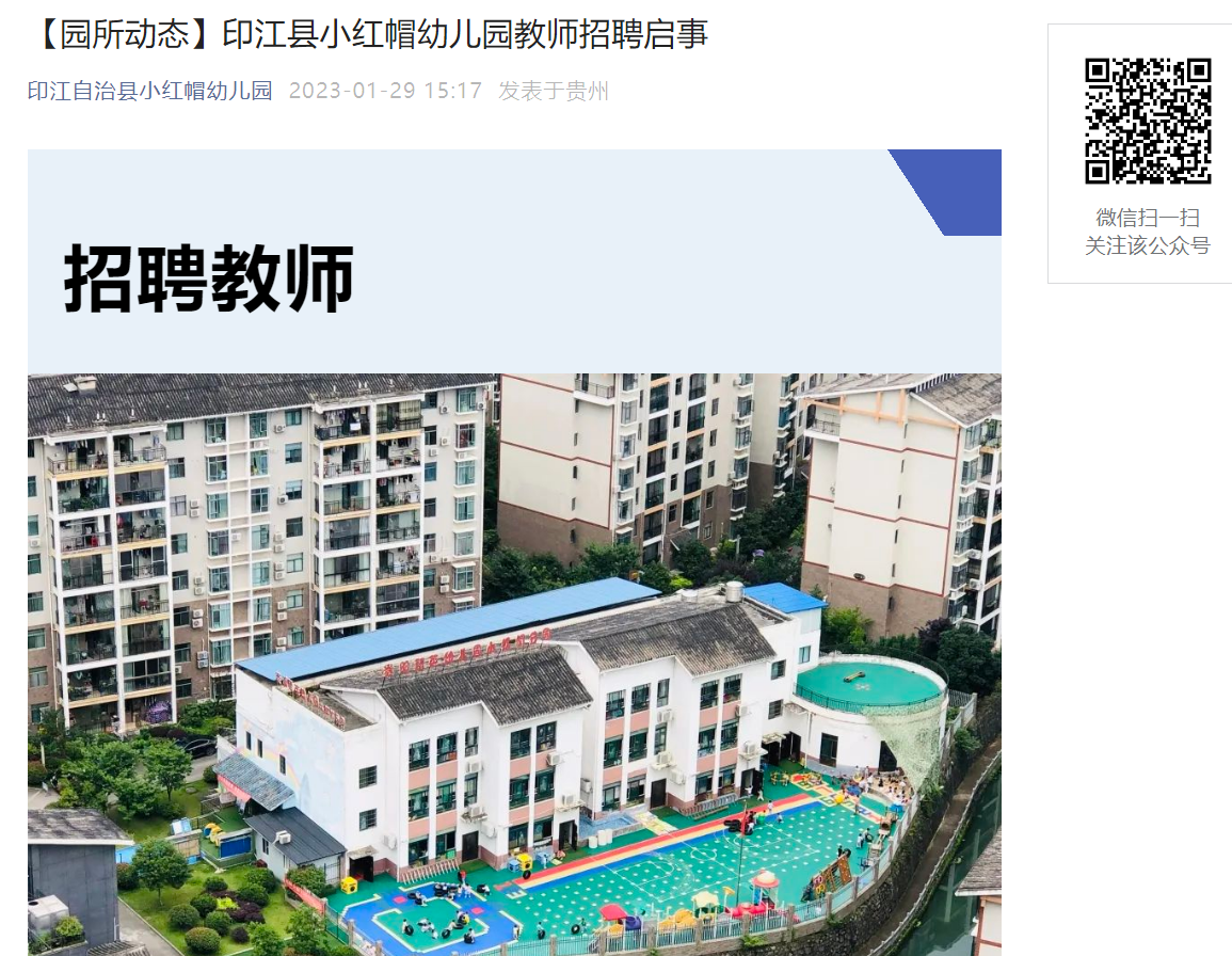2023貴州銅仁印江縣小紅帽幼兒園教師招聘啟事已發(fā)布,報(bào)名時(shí)間:即日起-2023年2月12日?,F(xiàn)將招聘公告原文發(fā)布如下: