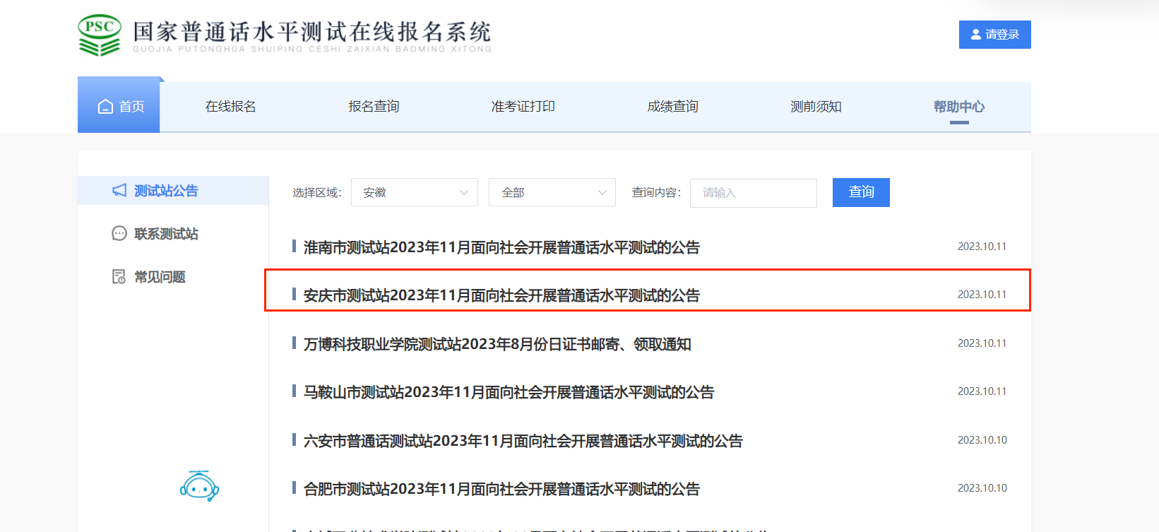 從國(guó)家普通話水平測(cè)試在線報(bào)名系統(tǒng)獲悉,2023年11月安徽安慶普通話考試時(shí)間及報(bào)名時(shí)間已公布,考試時(shí)間11月23日起,報(bào)名時(shí)間10月25日起,具體詳情如下:
