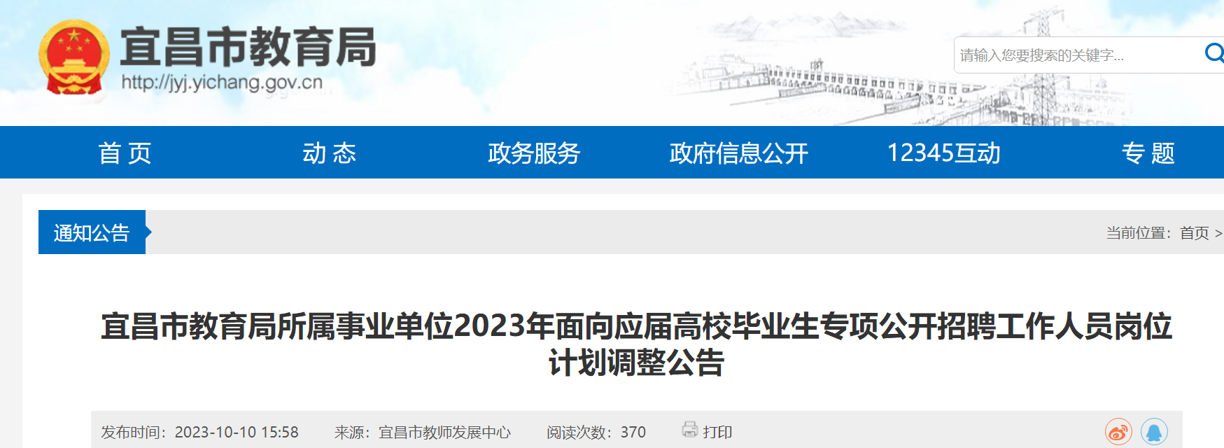 2023湖北宜昌市教育局所屬事業(yè)單位面向應屆高校畢業(yè)生專項公開招聘崗位調(diào)整公告已發(fā)布,現(xiàn)將公告原文發(fā)布如下: