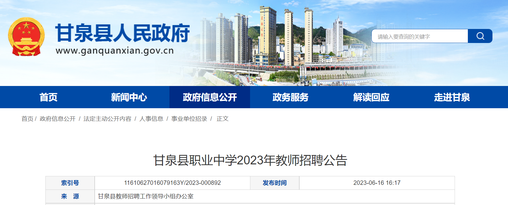 將《甘泉縣2023年職業(yè)中學(xué)教師招聘公告》在甘泉縣政府信息網(wǎng)和相關(guān)高校就業(yè)網(wǎng)站發(fā)布。