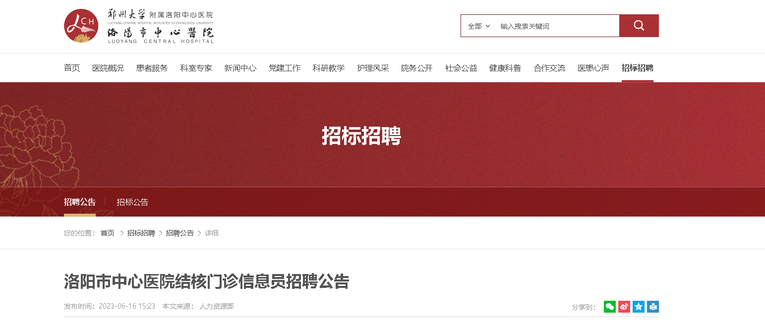 原文標(biāo)題:洛陽(yáng)市中心醫(yī)院結(jié)核門(mén)診信息員招聘公告